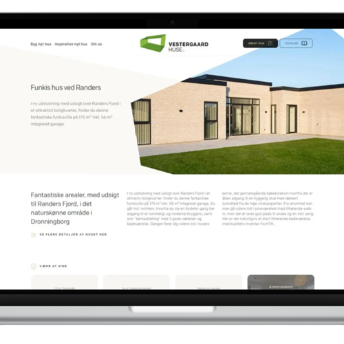 Det var vigtigt for Vestergaard Huse at sitet afspejlede deres brandidentitet 100%, da rigtig meget af deres markedsføringsindsats ligger i brandingen.